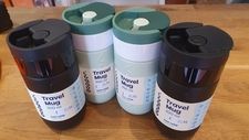De Dopper Travel Mug hebben we in de zwarte en groene uitvoering. 300 ml en hij kost € 25,90.